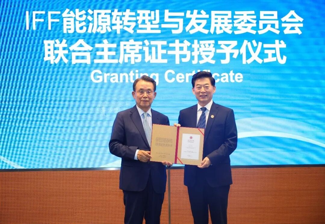 (韩升洙、辛保安、林建海、王思强共同为IFF能源转型与发展委员会揭牌。)