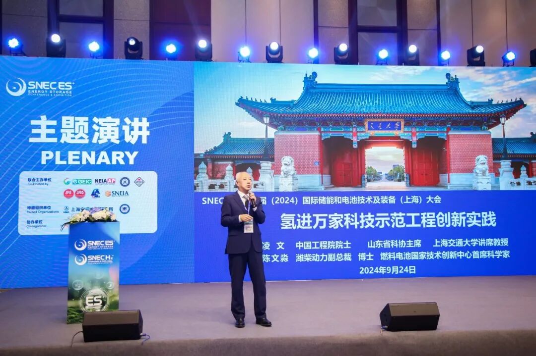 9 月 24 日,由中国电力建设企业协会联合全球绿色能源理事会、亚太新能源行业协会、中国可再生能源学会、上海市工业经济联合会、上海科学技术交流中心、上海新能源行业协会、SNEC光储氢产业联盟共同主办的SNEC ES+第九届(2024)国际储能和电池技术及装备(上海)大会、SNEC H2+第七届(2024)国际氢能与燃料电池技术和装备及应用(上海)大会在上海开幕。大会以“构筑新型储能产业链,赋能新一代电力系统和智能电网”为主题,旨在贯彻落实党的二十届三中全会精神和习近平总书记最新能源发展重要讲话精神,探索国内外储能和电池发展道路,加快构建新型能源体系和新型电力系统。上海市经济和信息化委员会副主任葛东波,第十四届全国政协委员、国务院国有资产监督管理委员会原党委委员、中国安能建设集团有限公司原董事长、党委书记、中国电力建设发展战略指导专家周国平,中国电力建设企业协会会长、国际金融论坛(IFF)能源转型与发展委员会联合主席、国家能源专家咨询委员会首任秘书长王思强,全球绿色能源理事会主席、协鑫(集团)控股有限公司董事长朱共山,上海市闵行区人大常委会副主任陈皋出席开幕式并致辞。第十四届全国政协常委、人口资源环境委员会副主任、国家电力投资集团公司原董事长、党组书记、中国电力建设发展战略指导专家钱智民,第十四届全国政协委员、中国可持续发展研究会理事长、科学技术部原副部长、国家外国专家局原局长、中国电力建设发展战略指导专家李萌,中国工程院院士、山东省科协主席、山东省原副省长、上海交通大学讲席教授、中国电力建设发展战略指导专家凌文,中国科学院院士、中国科学院上海技术物理研究所研究员、东华大学理学院院长褚君浩等领导和专家出席会议并发表主旨演讲。